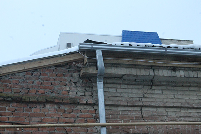 «Сход воды, снега идет на соседний дом. Не сделано примыкания», - сказал представитель управляющей компании. Он добавил, что металл, наложенный на крышу дома, слишком тонкий и сможет не выдержать, если кто то встанет на него, скажем, чистить снег.