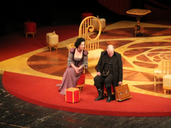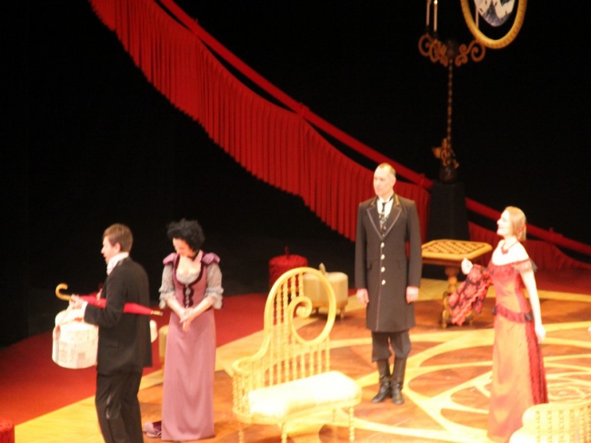 Классическая пьеса русского автора вызвала наибольшей интерес у саратовцев еще и потому, что ее поставил знаменитый театральный режиссер из Москвы Аркадий Кац. Несмотря на то, что постановка сохраняет внешний антураж 19 века, но она, что называется, без нафталина. Хрестоматийная история про то, как деловые люди обманывают друг друга, подделывают документы, женятся «на приданном», а девушки самыми разными способами ищут богатых женихов, у постановщика облекается в водевильную форму.