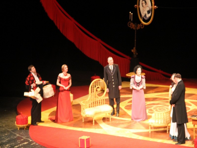 В Тамбове в рамках обменных гастролей саратовский драмтеатр представил на суд зрителей спектакли «Мафия и нежные чувства» по пьесе Люка Шомара, «Частная жизнь» (Кира Степанычева), «Сошедший с поезда» (Алексей Слаповский) и детский – «Гонза и волшебные яблоки» (Майя Береговая).