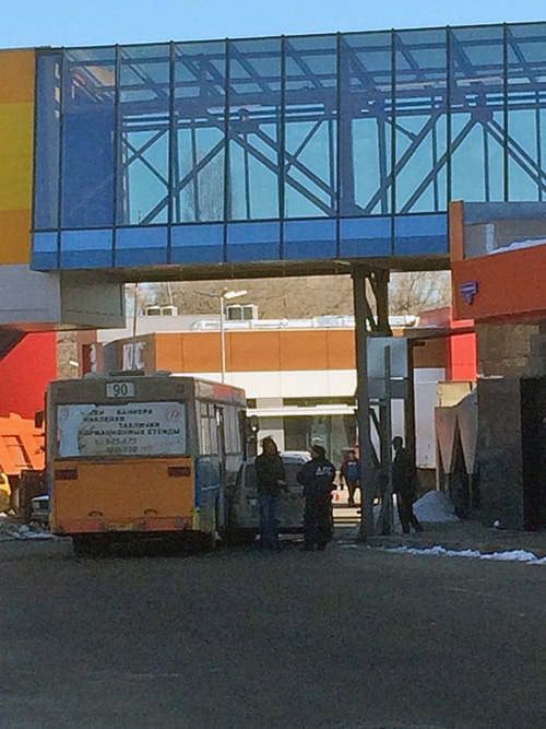 Под аркой ТЦ «Оранжевый» столкнулись автобус №90 и легковушка
