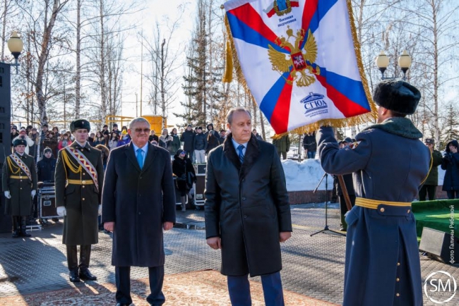 Во время торжественной церемонии губернатор передал ректору СГЮА штандарт, знаменующий начало военной подготовки в вузе, а курсанты принесли клятву, в которой пообещали доблестно защищать российский народ и добросовестно служить Отечеству, а также с гордостью нести звание студентов Саратовской государственной юридической академии. Закончился митинг возложением цветов к Вечному огню у мемориального памятника на главной аллее парка.