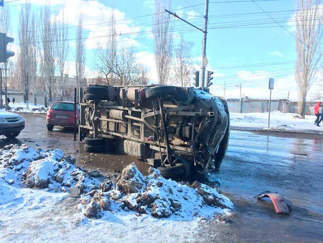 Как сообщают очевидцы, ДТП случилось на улице Буровой в районе пересечения с Благодарова (напротив остановки общественного транспорта в Елшанке). По предварительной версии, водитель «ГАЗели» по касательной столкнулся с легковушкой, а потом грузовик опрокинулся на левый бок.
