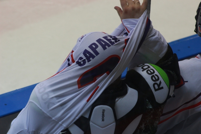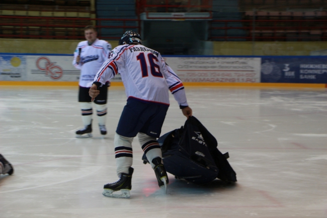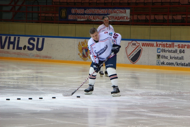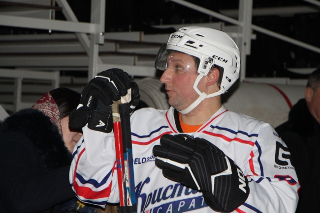Перед началом игры в ЛДС «Кристалл» для команд организовали несколько конкурсов, за победу в которых начислялись баллы. Сначала участники встречи попробовали свои силы в забивании шайбы. Однако с первого раза получилось далеко не у всех. Дважды промахнулся и Сараев.