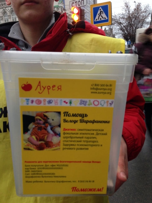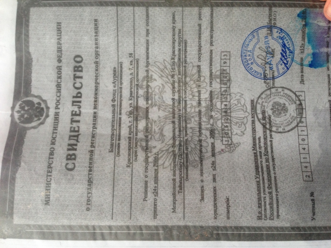 Молодой человек также поспешил показать целую папку документов, в числе которых были ксерокопия паспорта матери ребенка, ксерокс свидетельства о рождении ребенка, а также данные на организацию, зарегистрированную в Красноярском крае. В документах, и на урне для сбора средств, где изображен якобы больной малыш, был указан сотовый телефон, который, как уверял журналиста волонтер, принадлежит матери.