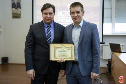 В Саратовском социально-экономическом институте РЭУ им. Г.В. Плеханова состоялось торжественное награждение лауреатов регионального этапа Всероссийской олимпиады по истории российского предпринимательства среди студентов, аспирантов и встреча с известным саратовским предпринимателем Андреем Табояковым.