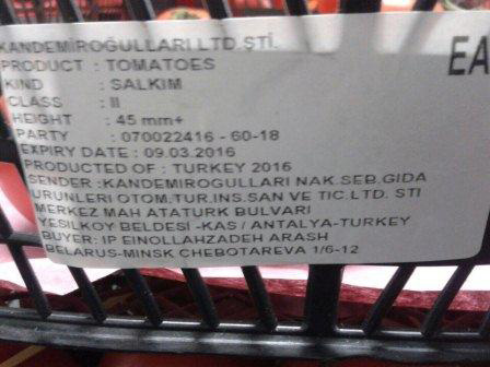 В ведомстве пояснили, что во всем рынке нашли только одну такую точку, где пытались реализовать эти томаты. Всего было изъято 31,6 кг продукции. На ящиках имелась маркировка, подтверждающая происхождение свежих томатов из Турецкой Республики.