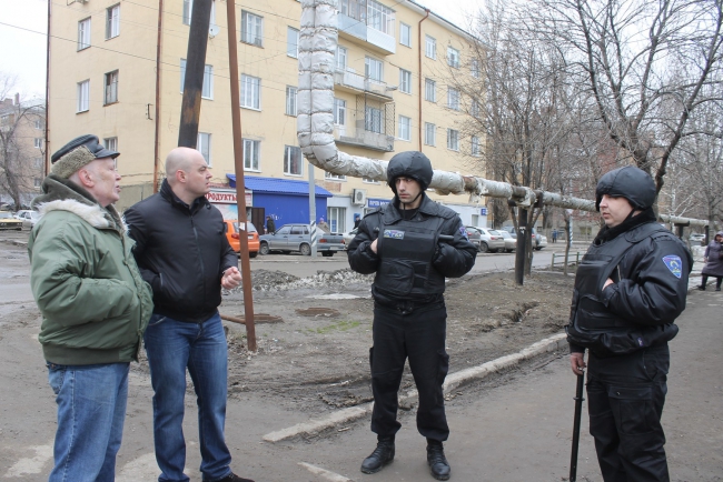 Пока гости коммерсанта гуляли по территории, по нажатию тревожной кнопки прибыли сотрудники ГБР (группа быстрого реагирования). Один из них в каске попросил предъявить документы. Когда Малявко предъявил свое удостоверение члена ОПы, тот убедился, что общественник действует в рамках закона. Но уезжать представители ГБР не стали, а просто сопровождали инспекцию, не вмешиваясь в ее работу.