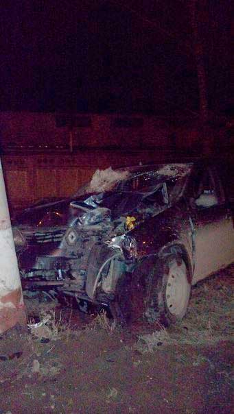 «Рено Логан» врезался в столб. Четыре человека получили травмы