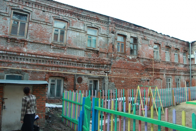После этого она отвела всех в другой двор, где находится площадка для дошколят. Там она показала часть здания, в которой и были найдены признаки аварийности. В этих помещениях занятия не ведутся, уточнила замминистра.