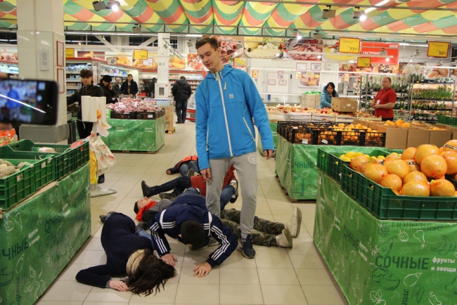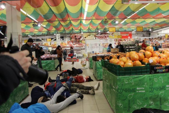 Сотрудники полиции не стали задерживать участников флешмоба «Упади замертво» в саратовском гипермаркете «Магнит». Напомним, необычная акция прошла в знак протеста на повышение цен на продукты.