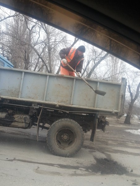 «Утро 11.03.2016. На Трофимовском мосту в полную силу идет ремонт дорожного покрытия. А именно: стоит ЗИЛ с табличкой «уборка города» и из кузова рабочий лопатой закидывает ямы землей... ЗЕМЛЕЙ, КАРЛ! Той, что соскребли с тротуаров... так вот ты какой, новый асфальт!!!», - пишет очевидец.