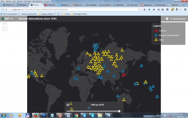Наиболее близкий к области взрыв, согласно этим данным, произошел во второй половине прошлого века на территории современного Казахстана, в Уральской области. Испытание было в нескольких километрах от Александрово-Гайского района. Причем на карте отмечено сразу два взрыва в этой местности.