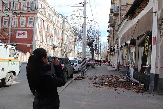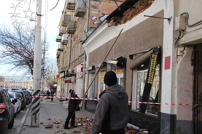 Около часа назад в Волжском районе Саратова произошло частичное обрушение фасада здания на Московской, 15. Кирпичная кладка упала пешеходную часть, повредив элементы хозяйственного магазина. К счастью, в момент обрушения никто из прохожих не пострадал.