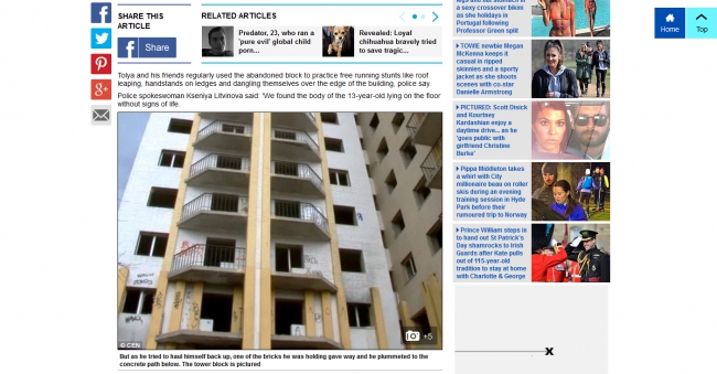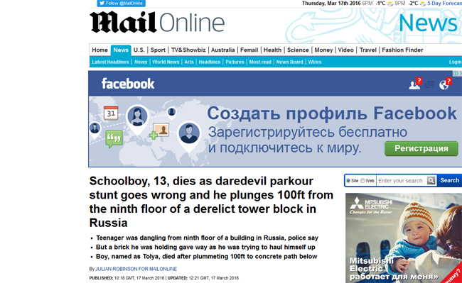 Случай с 13-летним мальчиком, погибшим при падении с высотки на улице Максима Горького в Саратове, нашел отклик в иностранных СМИ. Известный британский таблоид «Daily mail» написал заметку об этом.