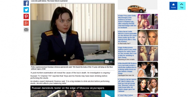 Читатель под ником Korotki (данные айпи свидетельствует, что находится в Англии) в своем комментарии выражает беспокойство, что подобные трагедии могут повториться в будущем: «Я видел детей, которые делают эти вещи в России, и они, как правило, хвастаются, или пьяны, и я боюсь, что это только вопрос времени прежде, чем каждый из них поскользнется».