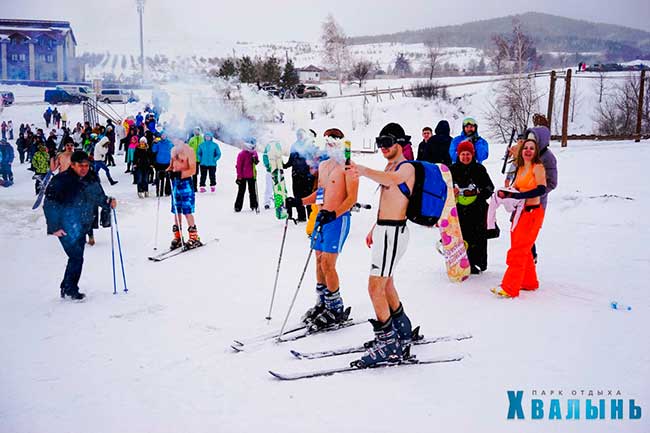 В минувшую субботу на территории Хвалынска Саратовской области прошел флешмоб «Голый спуск – 2016». Суть мероприятия состояла в массовом выходе на снег без одежды посетителей горнолыжного курорта.