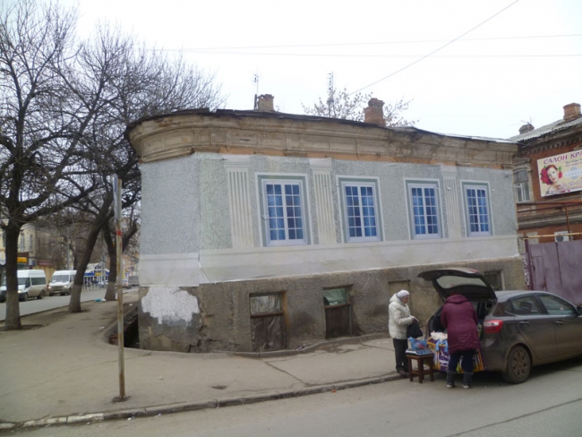 Двухэтажный особняк уже довольно давно пустует, впрочем, на первом этаже в окнах сохранились стекла и решетки, возможно, эти помещения как-то используются.