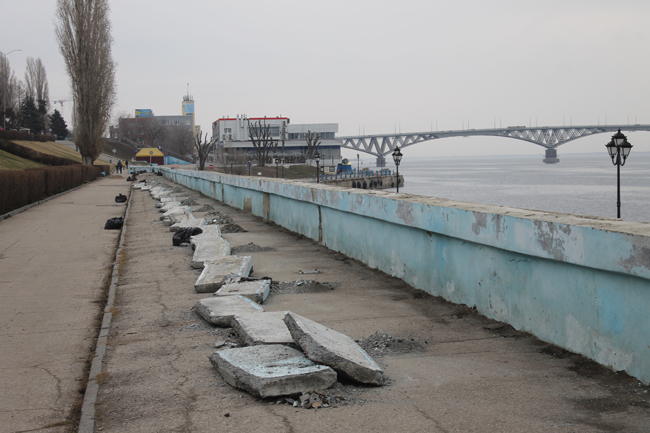В Саратове в спешном порядке ремонтируется Набережная Космонавтов. Работы проводятся на всем ее протяжении. Их очевидцем оказался корреспондент «Четвертой власти».