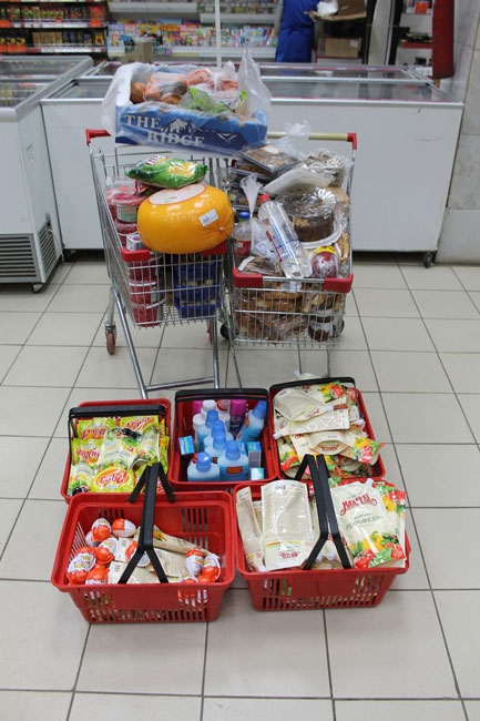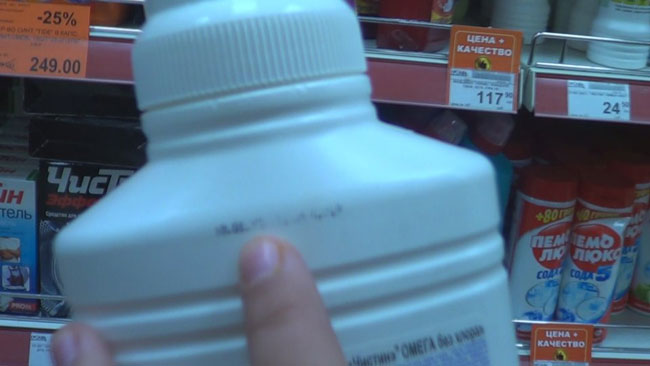 Вчера общественники посетили супермаркет «Гроздь» в доме №38 на проспекте Строителей. Василий Пашкин рассказал, что за два часа ребята собрали пять ручных корзин и две корзины-«телеги» просроченных товаров. Среди них оказались бытовая химия, майонез, несколько бутылок пива и минеральной воды, «киндеры» (шоколадные яйца) и даже детское молоко, которое пробыло на прилавке на день позже истечения срока годности.