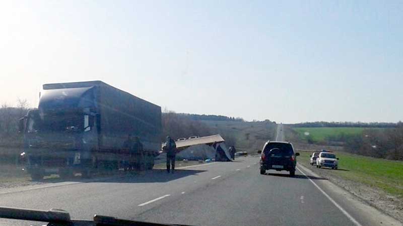 Под Петровском фура перевернулась от лобового ДТП с легковушкой