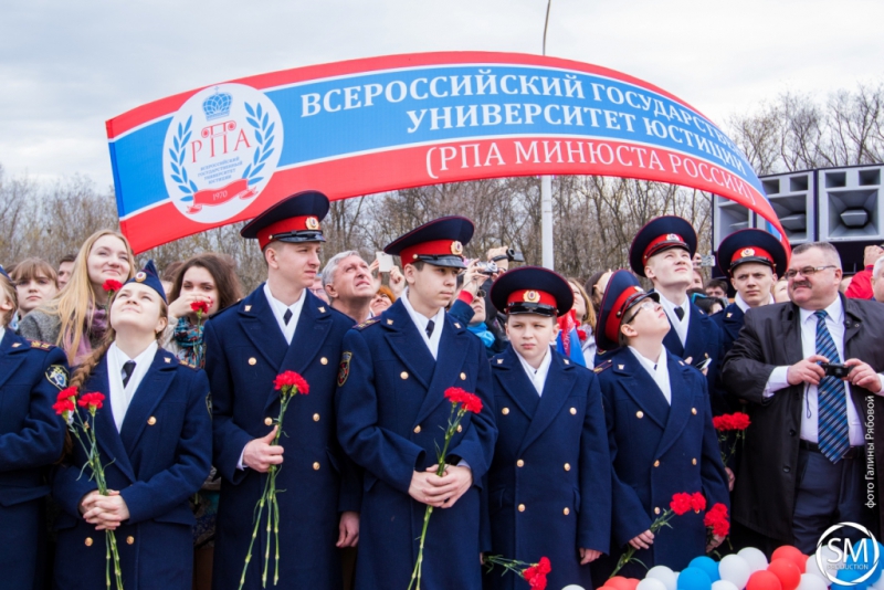 Более 150 обучающихся из различных филиалов ВГУЮ (Иркутск, Казань, Калуга, Махачкала, Ижевск, Ростов-на-Дону, Петрозаводск, Тула, Саранск, Санкт-Петербург, Москва, Хабаровск, кадеты Кадетского корпуса им. Александра Невского СК РФ) во главе с ректором, кандидатом юридических наук Ольгой Александровой прибыли на Саратовскую землю в рамках подведения итогов совместной со СГЮА всероссийской студенческой акции «Первые в космосе», посвященной празднованию 55-летия первого полета Юрия Гагарина в космос.