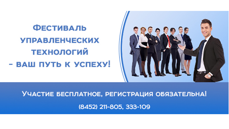 Приглашаем всех представителей бизнес-сообщества и жителей города посетить «Фестиваль управленческих технологий – Ваш путь к успеху!», который состоится 27 апреля 2016 года с 10.30 до 14.30 по адресу: г. Саратов, ул. Радищева, 89, 1 корпус ССЭИ, ауд. 204.