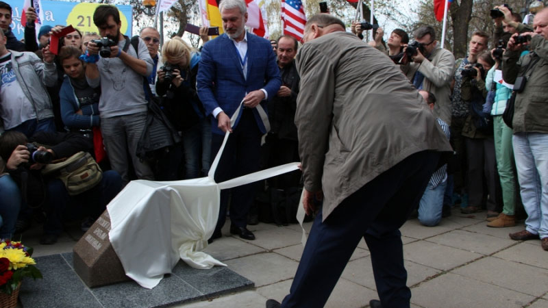 После этого Кузьмин и Гаглоев сняли белую мантию с камня и прокричали: «Ура!»