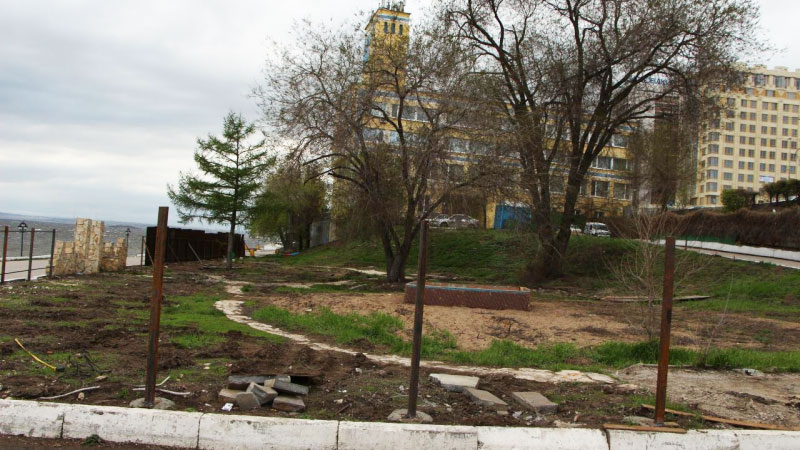 На набережной Саратова в районе причала №3 ведутся строительные работы посреди зеленой зоны. Непонятные движения начались 16 апреля на зеленой зоне рядом со зданием Речного вокзала, где заметили бригаду строителей и спецтехнику. Несколько мужчин соорудили в центре площадки деревянную емкость, где замешивался бетон. Его использовали, чтобы залить столбы под будущий забор.