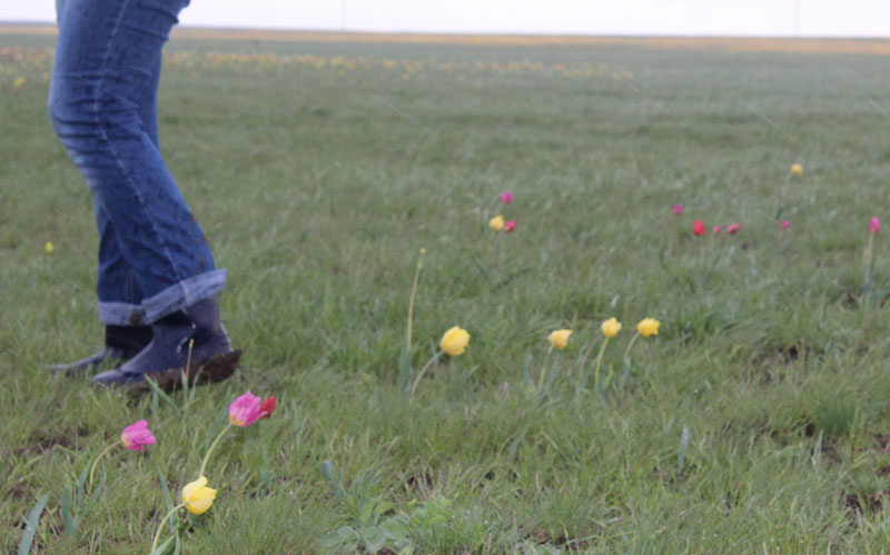 В обед они оказались на месте, и увидели живописную картину: поле, полное цветущих разноцветных тюльпанов, непроходимая грязь вокруг и рабочие, демонтирующие палатки и павильоны, выстроенные к фестивалю. Оказалось, что праздник уже прошел, губернатор пообщался с народом, и отбыл. Участниками фестиваля, по всей видимости, в основном были те, кого на место организованно привезли с утра – неподалеку стоял автобус с надписью «Дети» полный ребят, еще один микроавтобус с табличкой «Питерка» виднелся у трассы.