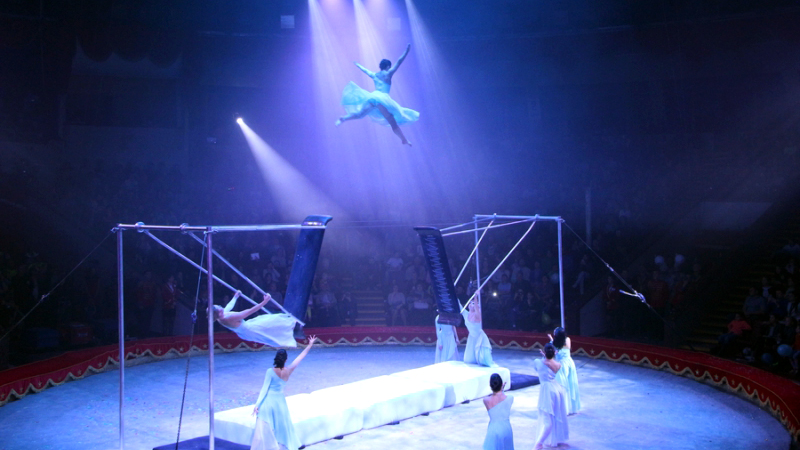 Однако по-настоящему покорить публику удалось 8 акробаткам с номером на параллельных качелях под названием «Выше неба». Девушки с необычайной легкостью продемонстрировали сложнейшие трюки с перепрыгиванием с одной качели на другую на расстояние нескольких метров. Когда из артисток во время прыжка зависала на несколько секунд над ареной, зал замирал от изумления. После того, как россиянки завершили свое выступление, зрители встали и долгое время аплодировали с криками: «Браво».