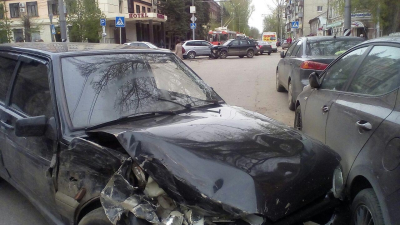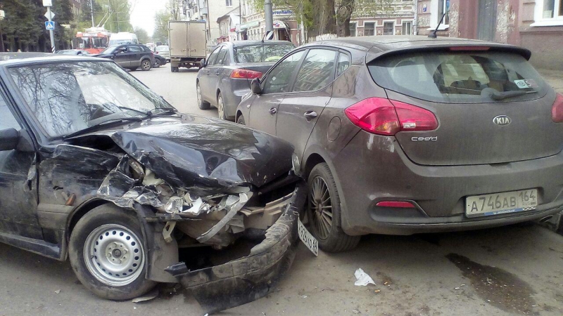 Сегодня днем в центре Саратова произошло массовое столкновение автомобилей. По предварительным данным, участниками ДТП стали 8 транспортных средств, одно из которых не стало дожидаться ГИБДД.