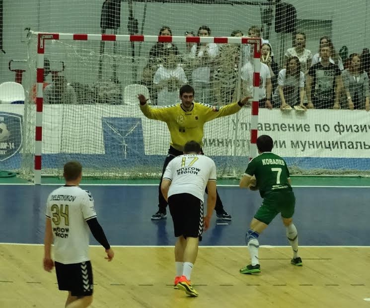 19 минут на площадке была равная игра. В лидеры чаще выходил «СГАУ-Саратов», однажды его преимущество достигло двух мячей. Подмосковные гандболисты заиграли, как подобает их высокой репутации, во второй половине первого тайма. Усилиями двух Дмитриев - Корнева и Ковалева – они ушли в отрыв на четыре броска, к перерыву преимущество составляло «+5».