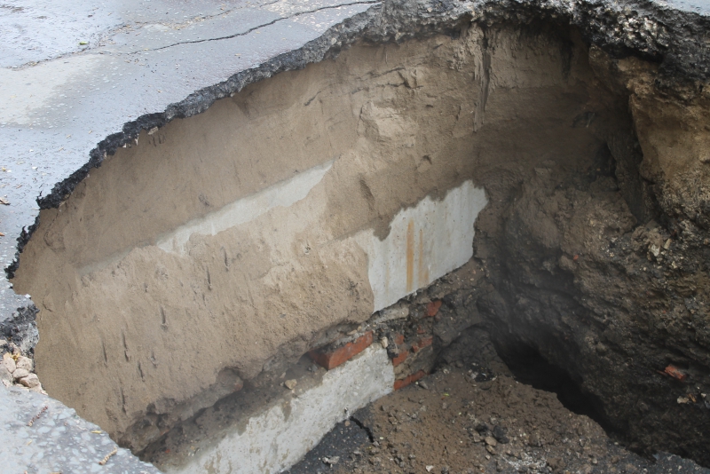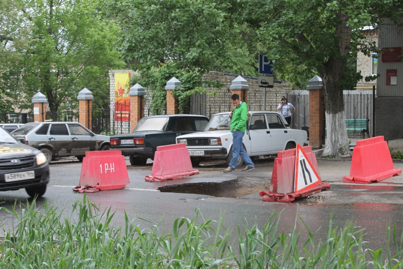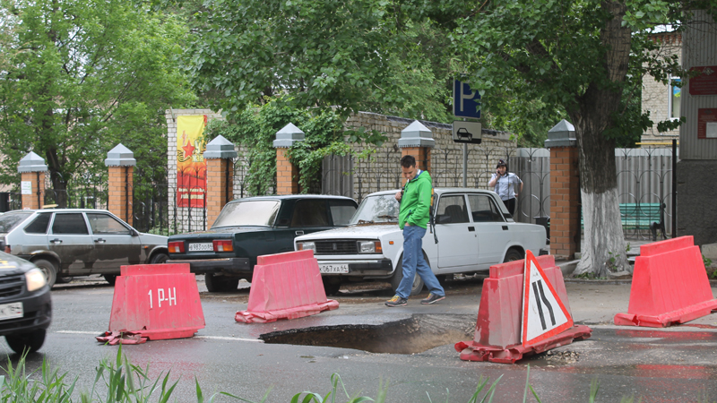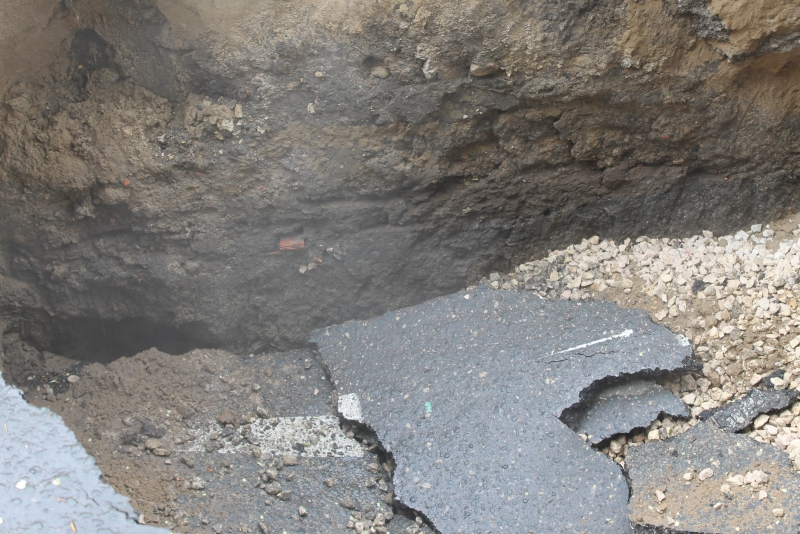 Местный житель также поведал, что примерно в этом же месте на Октябрьской осенью вели работы коммунальные службы. Продолжительное время движение по дороге было перекрыто.