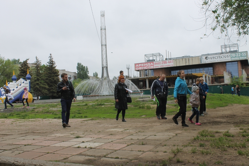 По его словам, в свое время администрация Саратова в судах отстояла фонтан, теперь он и территория под ним являются городской собственностью. Евгений Чернов показал горожанам проект планировки, согласно которому частнику отходит большая часть сквера. Вместе с геодезистом они обошли территорию и убедились, что будущие стоянки для посетителей нового ТЦ на месте ДК разместятся как раз на месте аллеи.