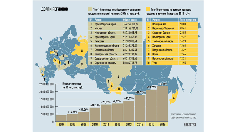 «Краткосрочный эффект от замещения дорогих коммерческих кредитов на бюджетные есть, однако проблему долгов регионалов, ставшую хронической, нужно решать системно. В том числе за счет повышения или перераспределения налогов», - пришли к выводу авторы исследования.