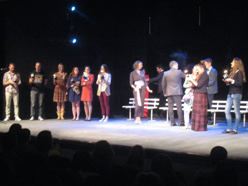 До объявления результатов на сцену «Теремка» вышли представители каждого театра. От ведущих церемонии они получили по зажженному квадратному ядру. После выступил член жюри Алексей Зыков - актер, доцент, заведующий кафедрой специальных дисциплин Театрального института СГК им. Л.В. Собинова. Он отметил работу каждого театра, назвав при этом студию «Арлекин» из пензенского города Заречный «трудягами».