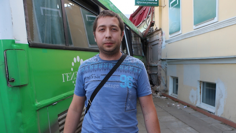 Водитель автобуса №11, врезавшегося сегодня в дом на улице Московской, рассказал корреспонденту «Четвертой власти» о том, как случилось ДТП.