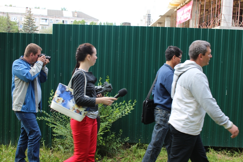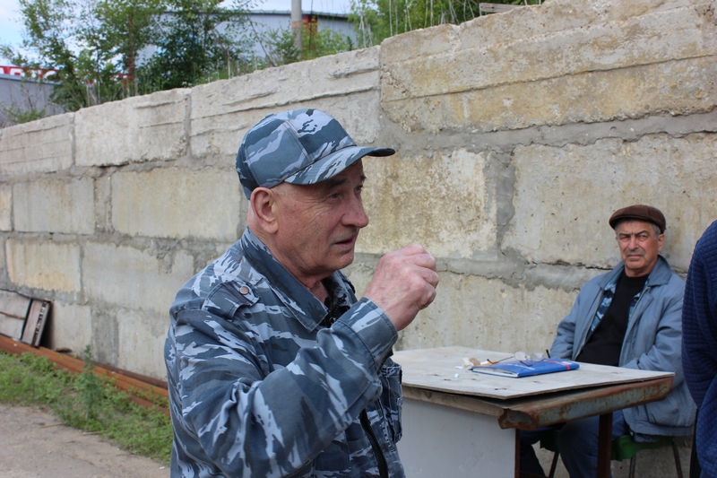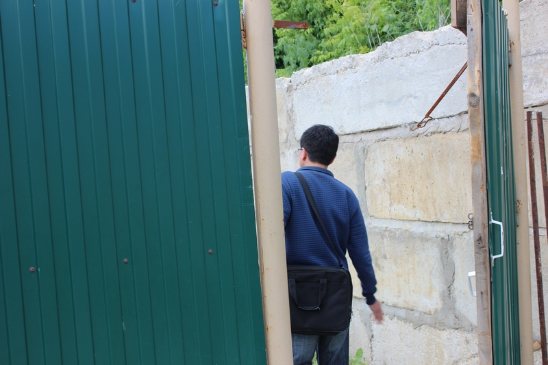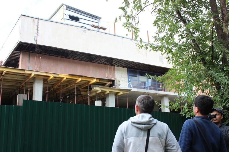 Ташпеков прошел на территорию стройки и попросил у охранника позвать руководство. Оказалось, что начальства на месте нет. Потом, когда Ташпеков общался с журналистами вне стройплощадки, к нему подошел некий молодой человек, который попросил не фотографировать его. Он назвался Александром – представителем собственника.