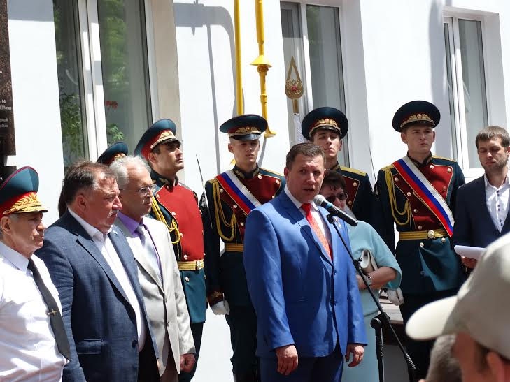 ВИП-гостями мероприятия стали зампред областного правительства Михаил Горемыко, глава администрации Саратова Валерий Сараев, главы районных администраций города, депутаты городской думы (в частности, Герой России Александр Янклович), первый заместитель командующего войсками Уральского регионального командования внутренних войск МВД России, генерал-майор Тарас Исаков, Герой России Александр Никишин. Все они в своих приветственных речах отмечали важность открытия памятной доски именно в Саратове. По их мнению, это должно помочь патриотическому воспитанию местной молодежи.