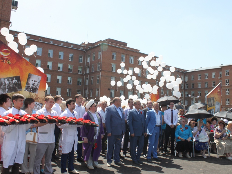 Всего в годы Великой Отечественной войны в прифронтовом Энгельсе дислоцировалось 12 эвакогоспиталей города, которые приняли более 130 тысяч раненых, 85% из которых врачам и медсестрам удалось возвратить в строй. Память военных медиков участники мероприятия почтили минутой молчания, после чего в небо было выпущено 311 белых шаров – число фамилий, выбитых на мраморных плитах архитектурной композиции.