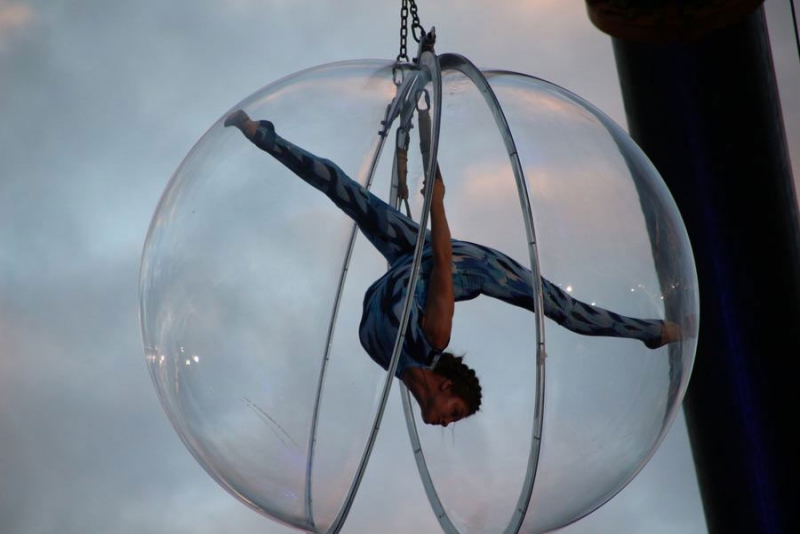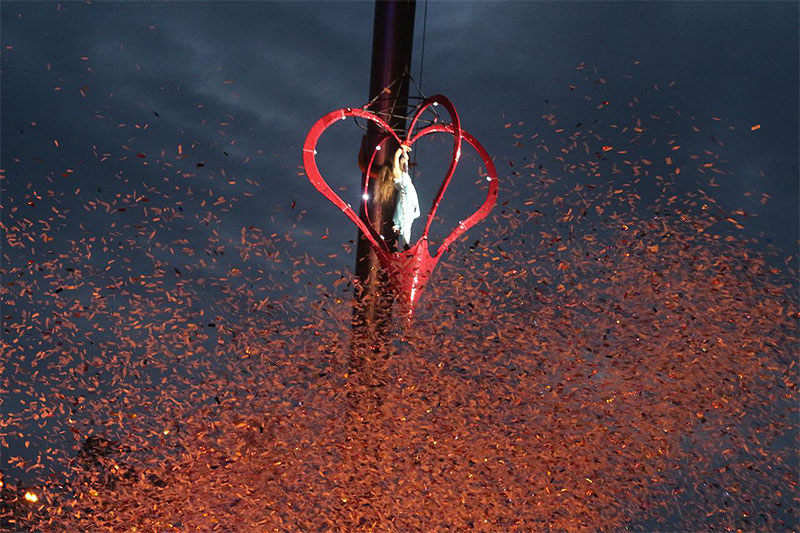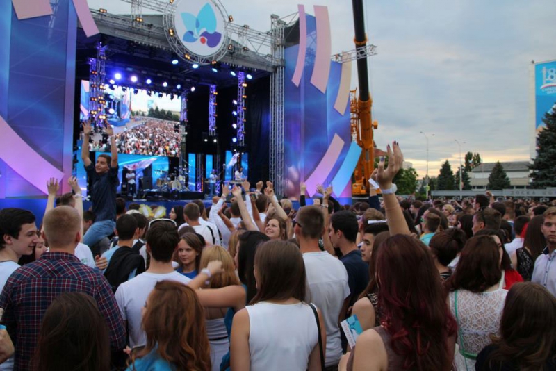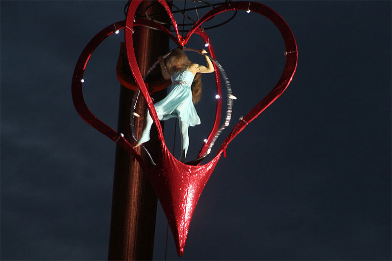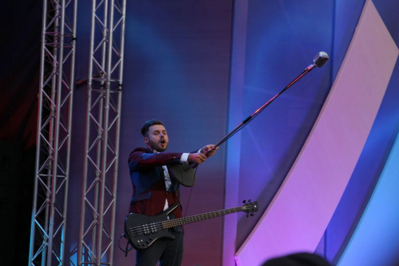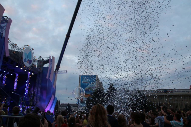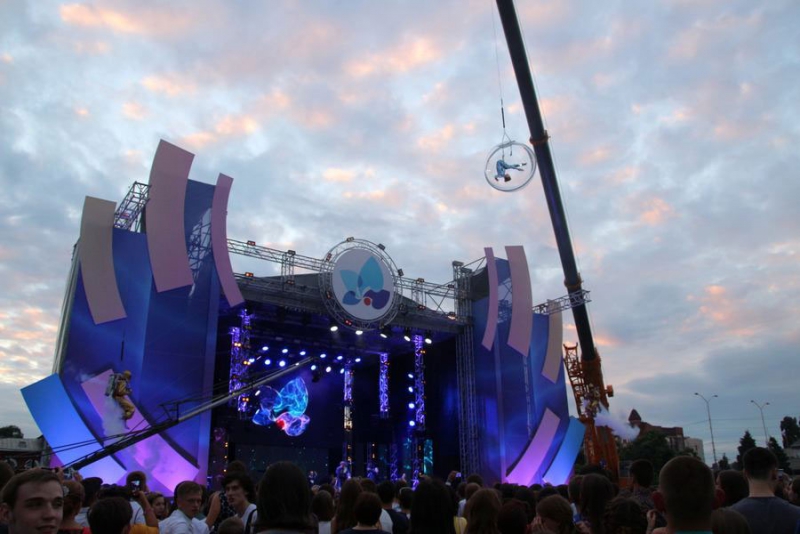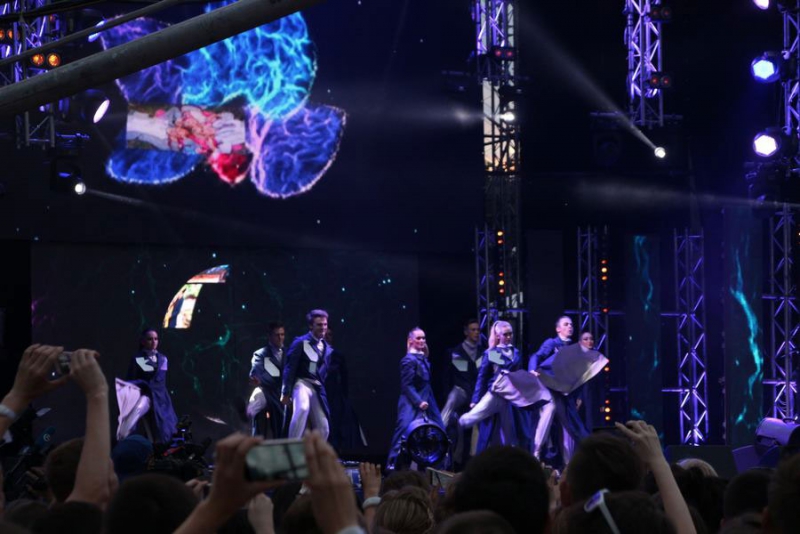 Под всеобщее ликование и аплодисменты к публике вышел шоумен, ведущий телеканалов RU.TV и «Россия 1» Иван Чуйков. После этого над сценой на тросах «воспарили» воздушная гимнастка в стеклянном шаре и трюкачи в костюмах космонавтов.