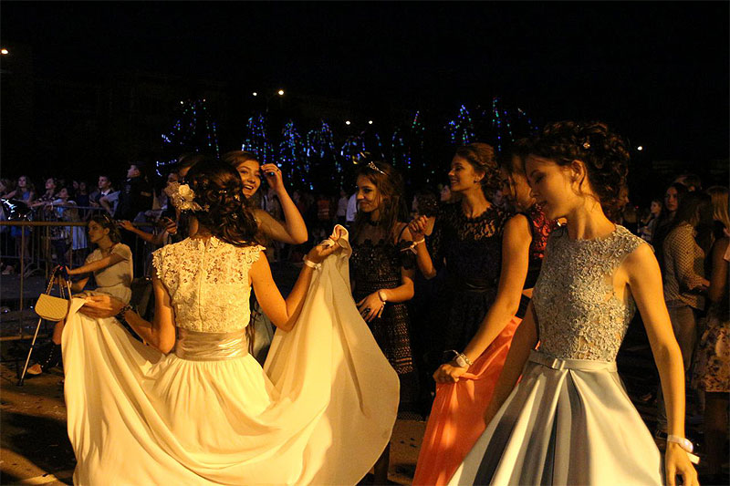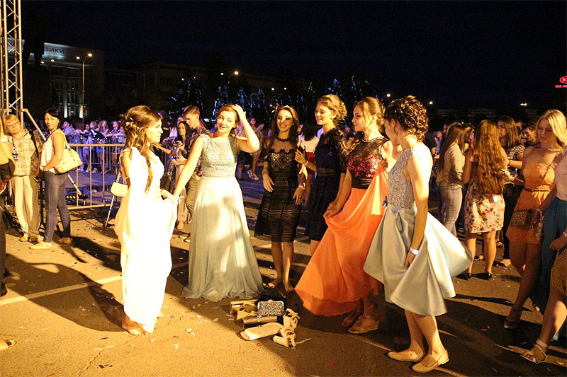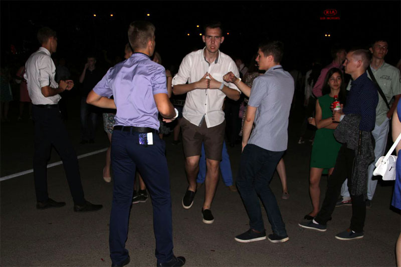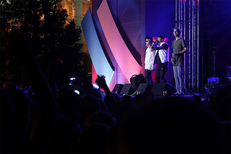 Поп-группа исполнила несколько своих композиций. В их числе был и хит «Она вернется». Слова этой песни, казалось, знает почти каждый выпускник, поскольку вся площадь подпевала. Последний куплет и вовсе спели одни выпускники, а один из участников группы сопровождал это битбоксом.