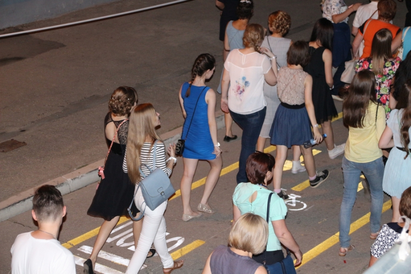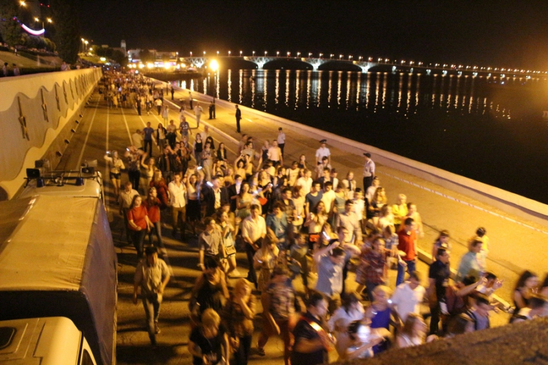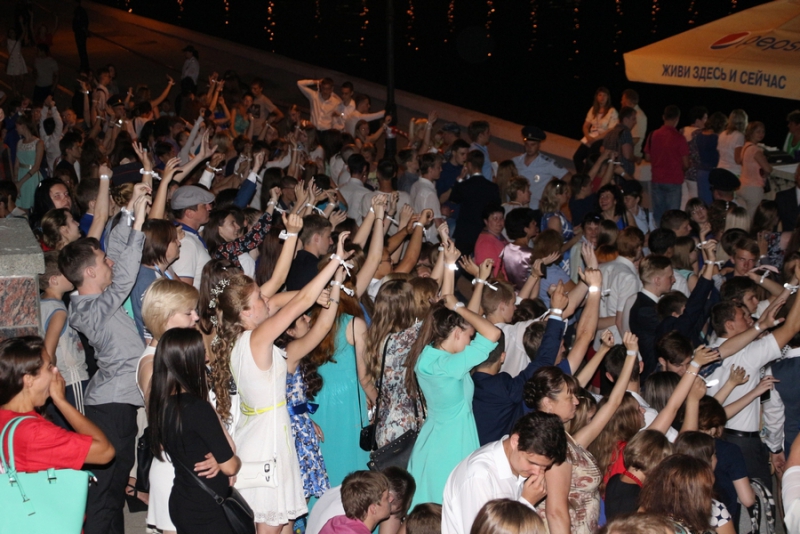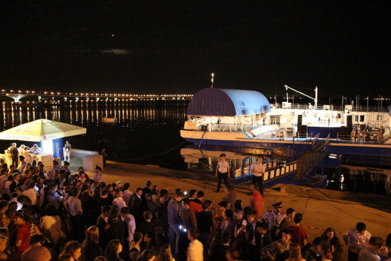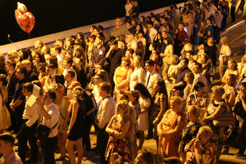 По окончанию шоу-программы с участием звезд российской эстрады выпускники колоннами проследовали от Театральной площади на набережную. Там ребят ожидали ведущие, которые предложили им вспомнить самые яркие моменты школьной жизни и загадать желания о своем будущем. Чтобы они сбылись, в ход пошла пиротехника.