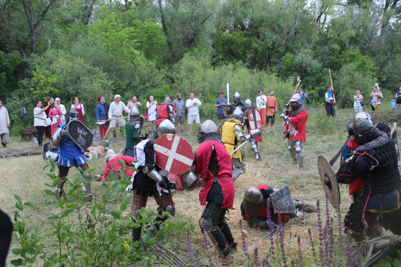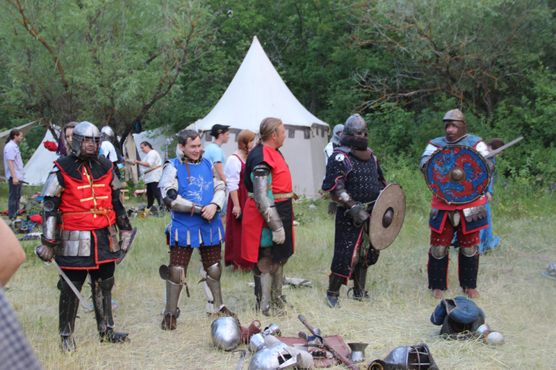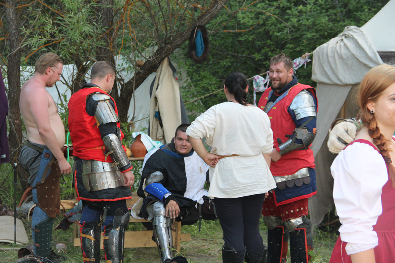 Более ста человек расположились средневековым лагерем на берегу живописной реки Терешки в Вольском районе. На построенном ристалище прошли соревнования пятерок, и общая схватка 11 на 11 закованных в доспехи рыцарей. Завершились поединки боями один на один, некоторые гости фестиваля, одолжив доспехи, решили сами попробовать себя в роли воинов.