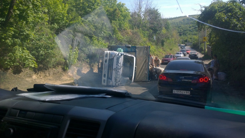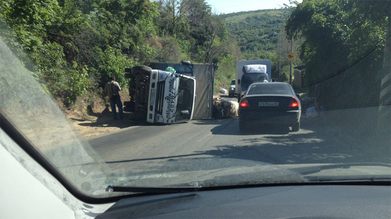Грузовик с макулатурой перевернулся и блокировал серпантин в Затоне