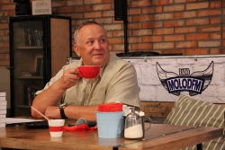 Я принес вам сегодня свой мед, со своей пасеки. В воскресенье я делал пробную качку. У меня всего 10 ульев, больше я не держу. В год я получаю примерно полтонны меда. Я его весь раздаю, в детские дома, друзьям, родственникам.