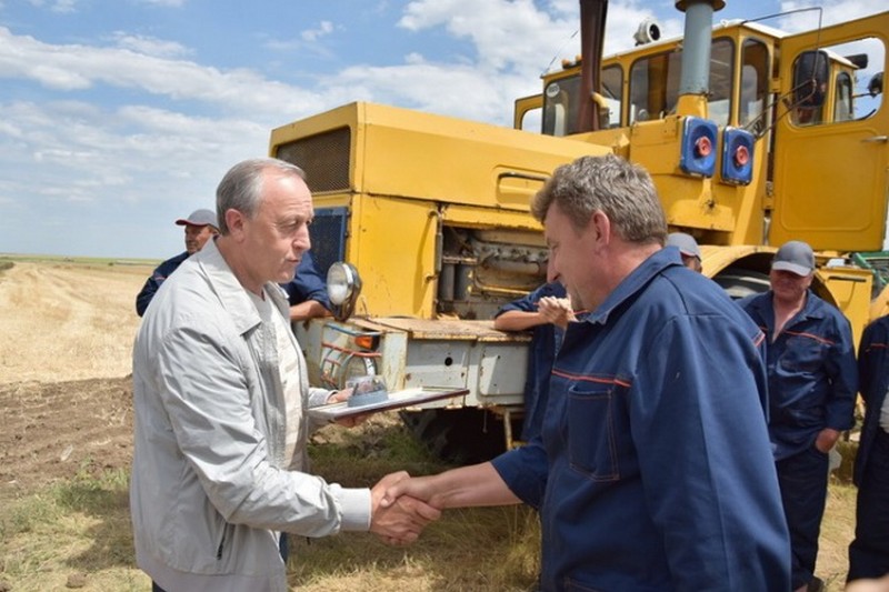 Радаев сел за штурвал комбайна и поручил аграриям бить рекорды