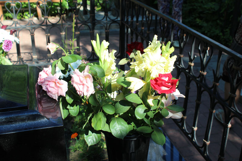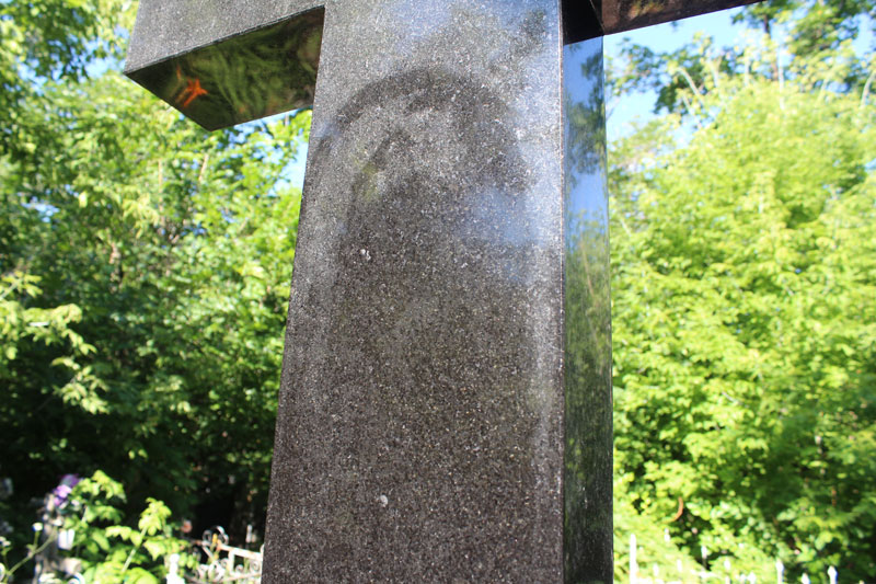 На обеих сторонах креста заметны потеки, словно полили какой-то жидкостью. Эти потеки не стираются, не маслянисты на ощупь, как рассказывали очевидцы. Женщины заверили, что это миро, и оно пахнет розой. Отметим, что на могиле стоял букет с розами.