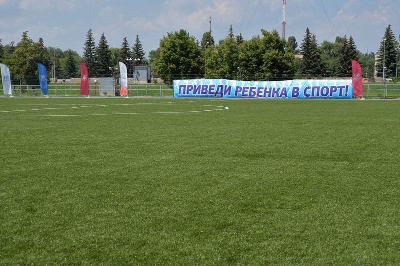 Воспитанникам спортшколы Иван Чепрасов вручил самый главный спортивный атрибут - футбольные мячи. После открытия на футбольном поле был дан старт матча между командами «Сокол» (Саратов) и «ДМБ» (Балаково).