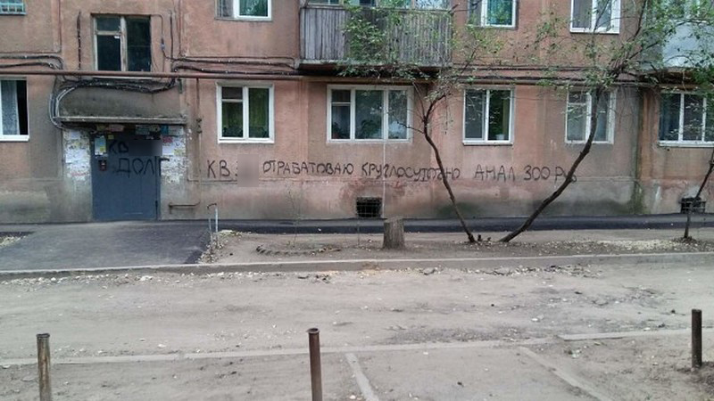 Сегодня в Энгельсе Саратовской области на двух улицах на домах появились непристойные надписи. Местные жители предполагают, что это сделали коллекторы.